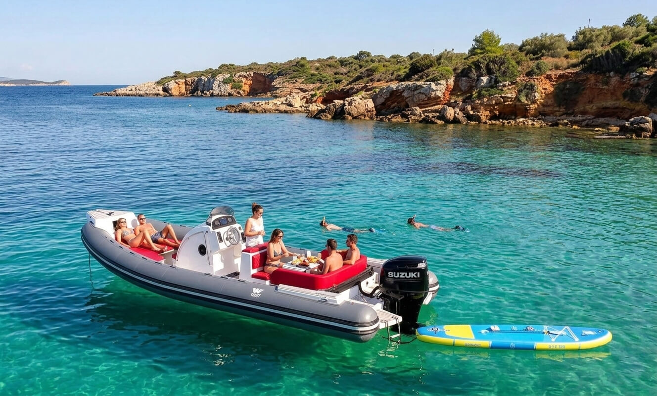 Secret coves, crystal-clear waters, and an aperitif on board. Hop on our RIB boat with a skipper and enjoy a day you won’t forget.